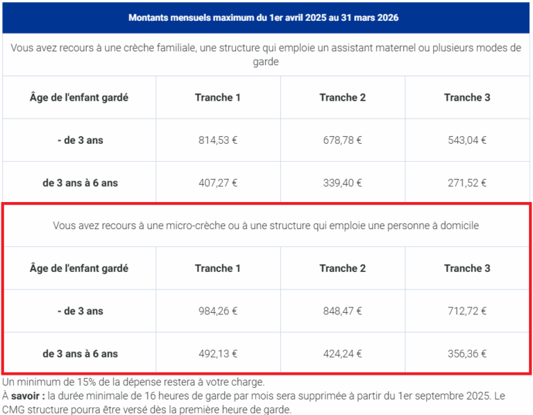 Le CMG est une aide financière versée par la CAF (ou la MSA) pour aider les familles à financer la garde de leur enfant de moins de 6 ans (ou jusqu’à 12 ans pour les familles monoparentales à partir de septembre 2025). Il peut couvrir une partie des frais liés, entre autres, à l’accueil en micro-crèche.